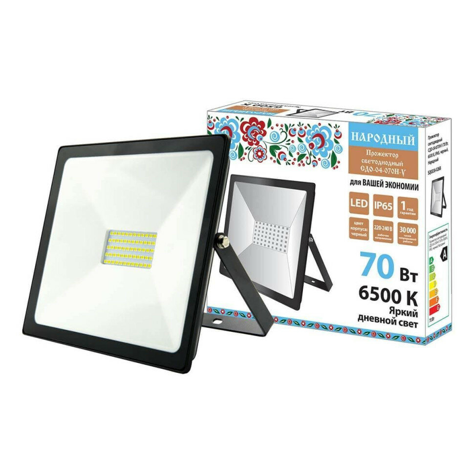 Прожектор светодиодный СДО-04-070Н-У 70 Вт, 6500 К, IP65, черный, Народный интересное:
