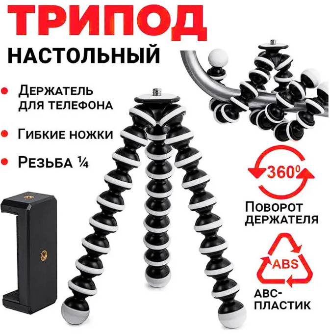 Мини-штатив FLEX-25 ISA 2в1 (для телефона и фотоаппарата) интересное: