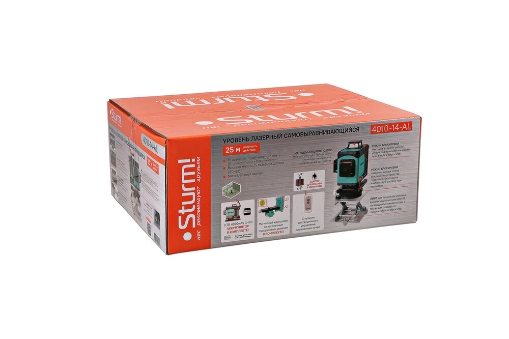 4010-14-AL Уровень лазерный,16 зелёных лучей,Li-ion акк.,лифт,магнитн. угол.,пульт д/у., Sturm!