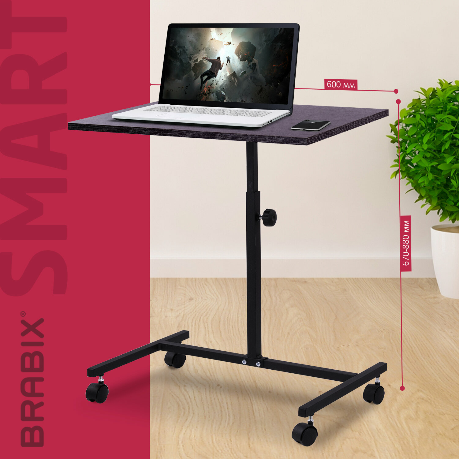 Купить Стол Brabix smart, cd-015 600х380х670-880 мм, лофт, регулируемый, колеса металл, каркас черный