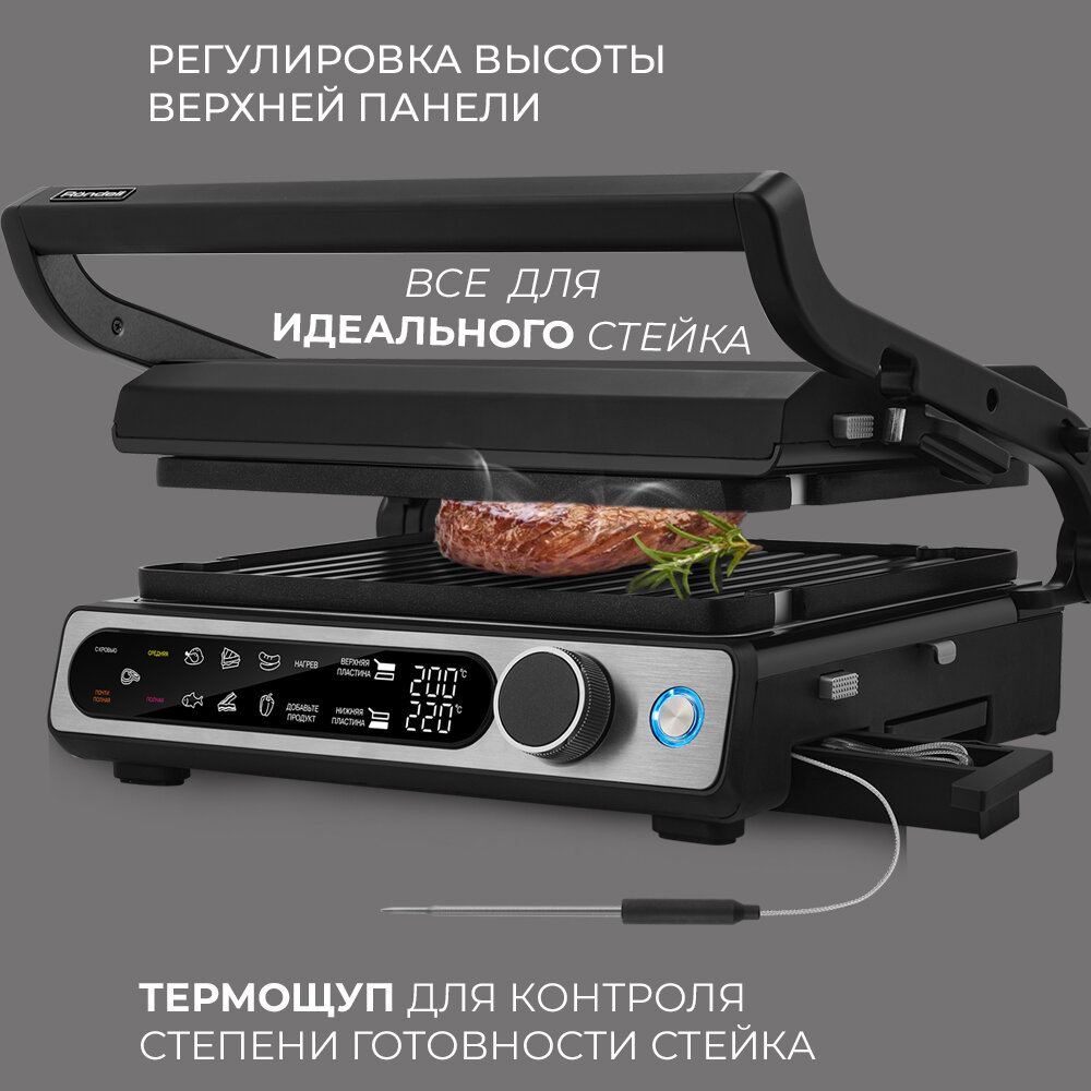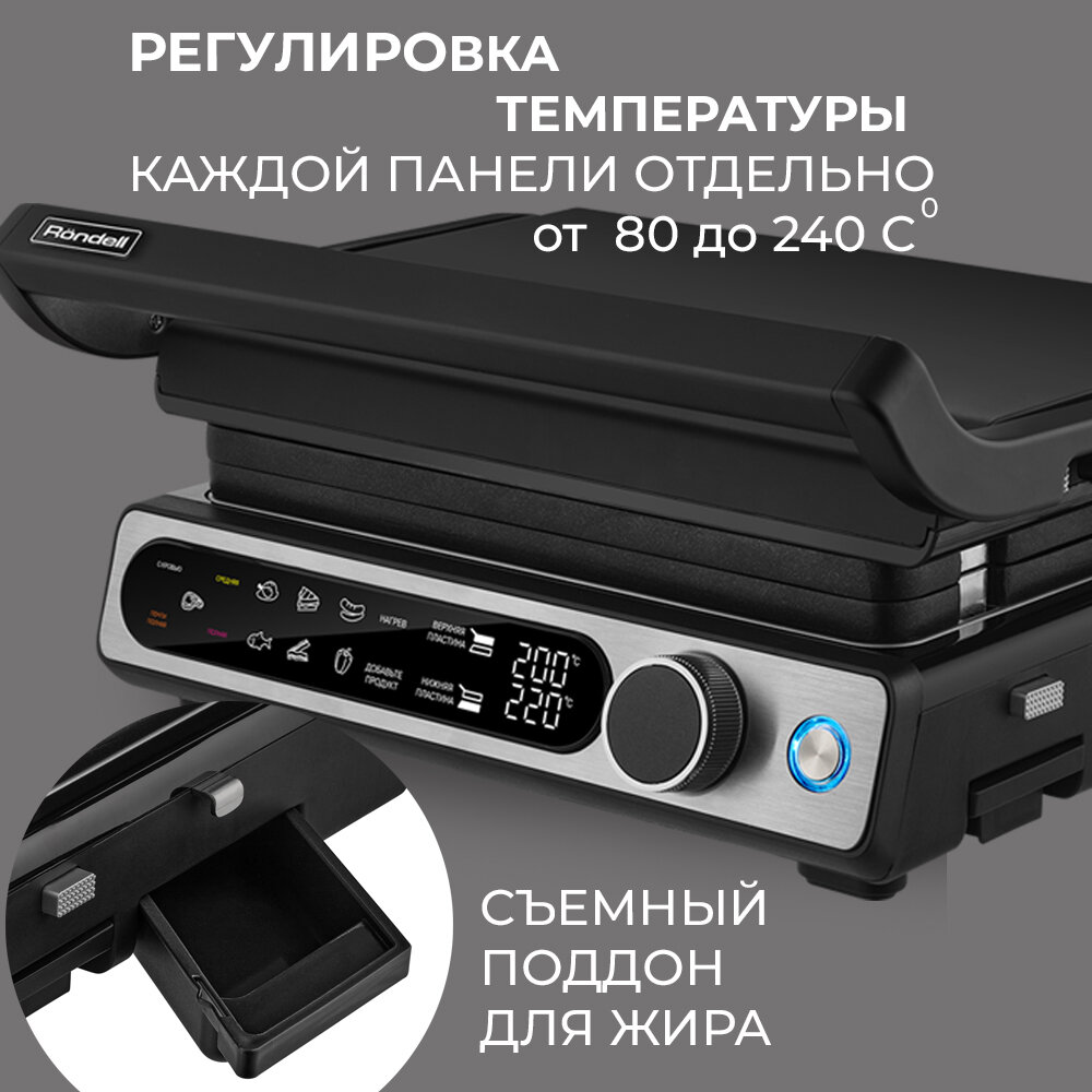 Гриль-пресс Rondell-МБТ RDE-1700 с электронным управлением, цвет черный