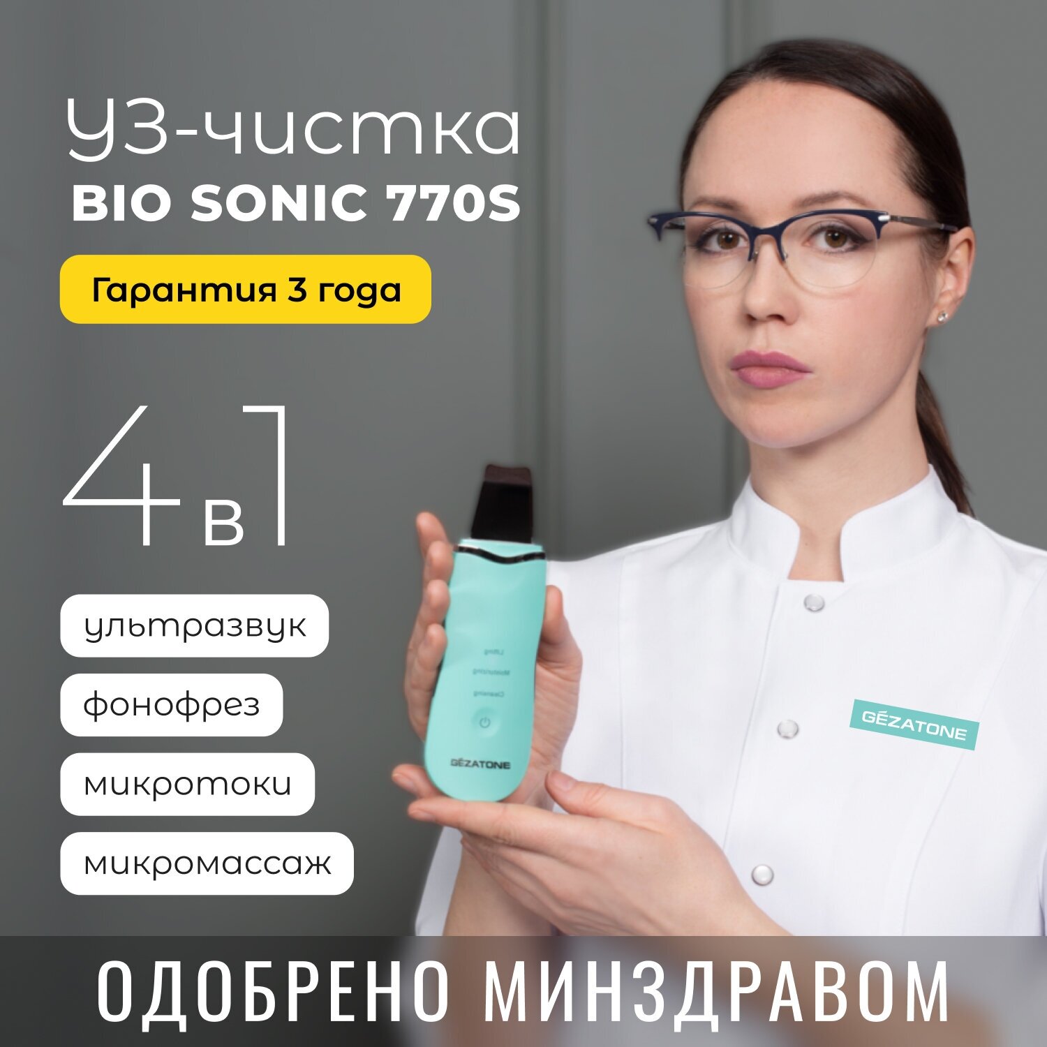 Ультразвуковая чистка, микротоки и фонофорез лица, 4 в 1 Bio Sonic 770 S, Gezatone