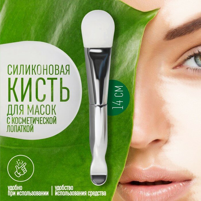 Кисть для масок «SILVER», силиконовая, с лопаткой, 14 см, цвет серебристый/белый интересное: