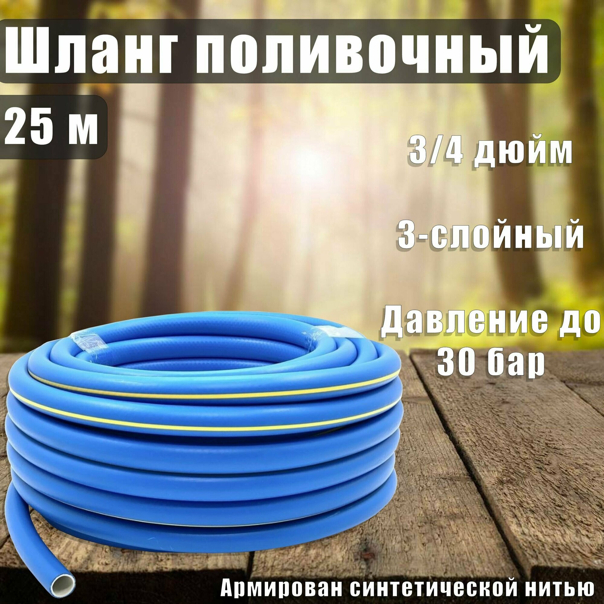Шланг резиновый армированный, 19х25-1,0 - ВГ., бухта 25 м (синий с жёлтой полоской) ТЭП Вихрь