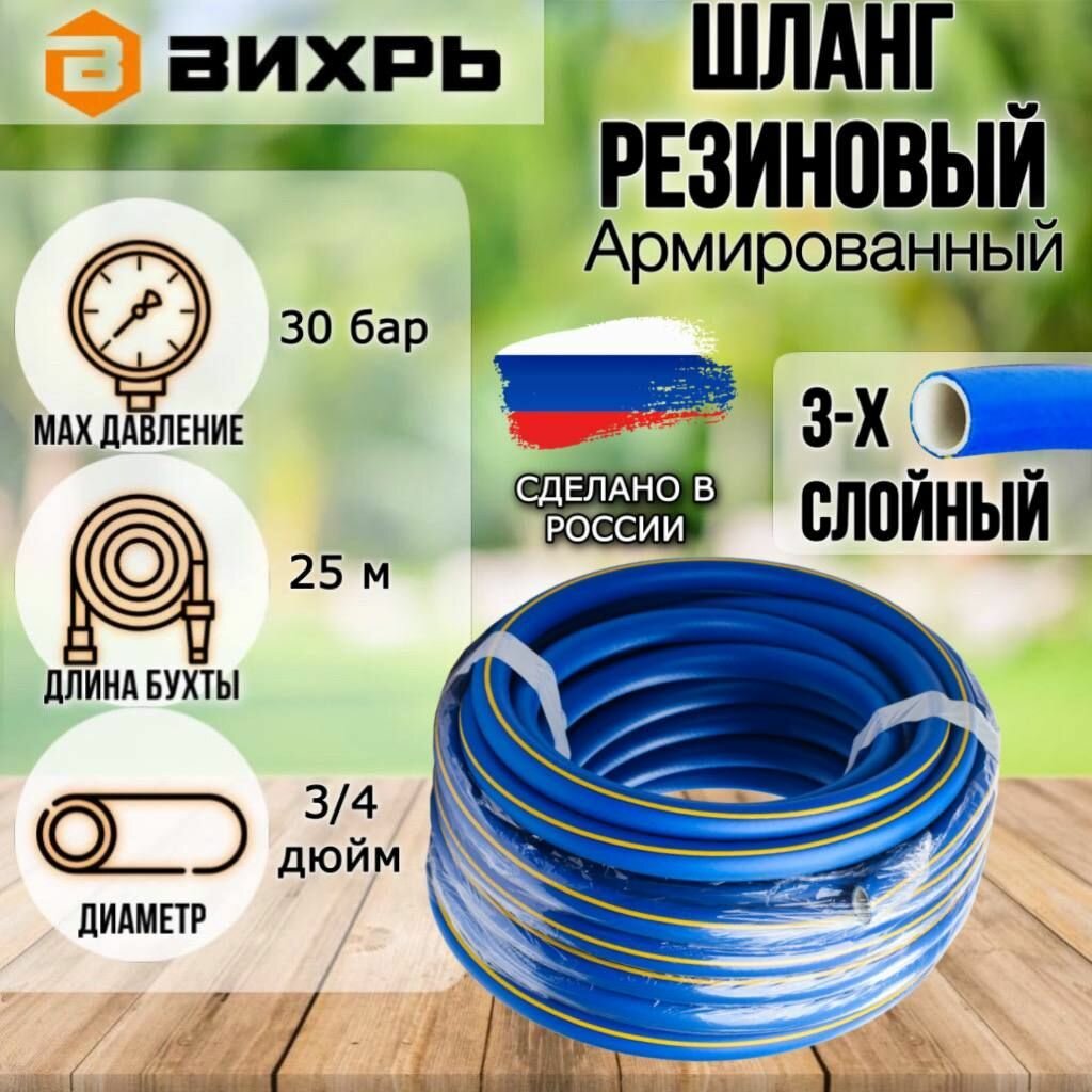 Шланг для полива вихрь 3/4" х 25 м резиновый армированный ТЭП