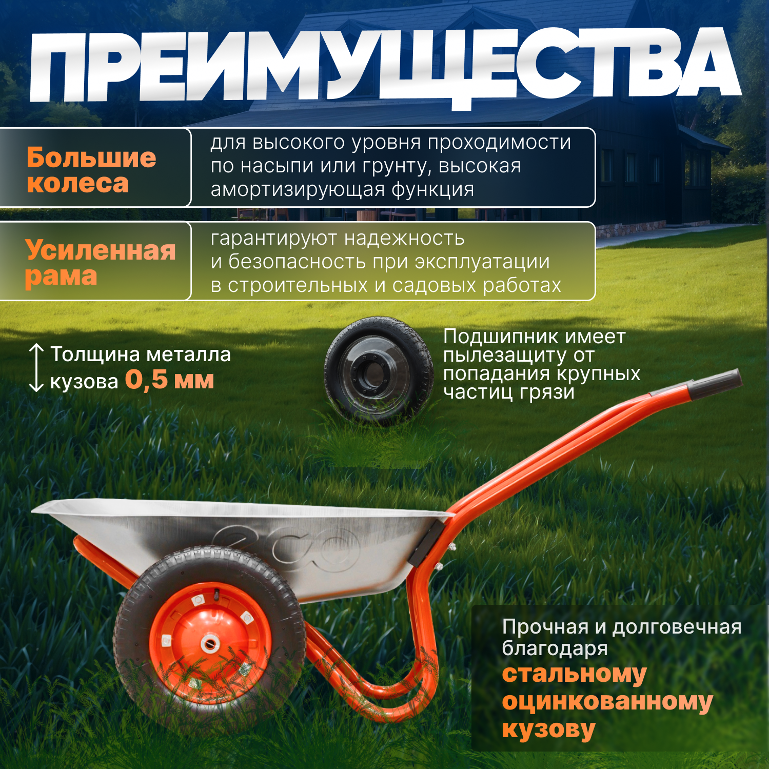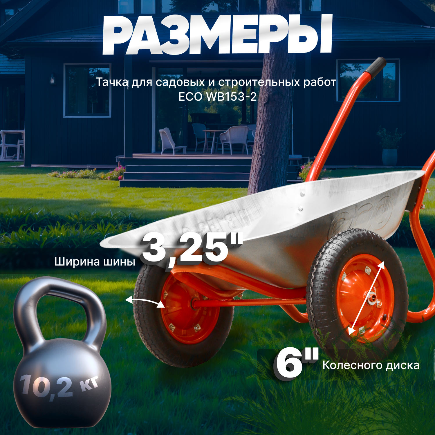 Тачка садовая ECO WB153-2 (80л, 150кг, 2 пневмоколеса 3.25-8) (80л, 150кг, 2 пневмоколеса 3.25-8)