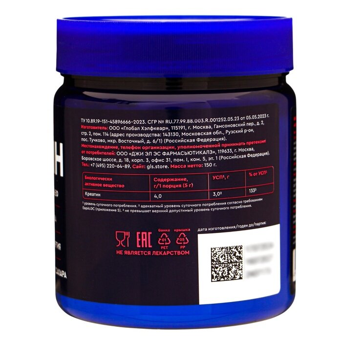 Креатин для набора мышечной массы GLS со вкусом малины, 150 г 9703611