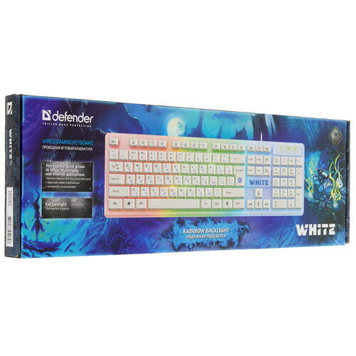 Клавиатура Defender White GK-172 RU, радуж. подсветка,104кн, игровая, пров