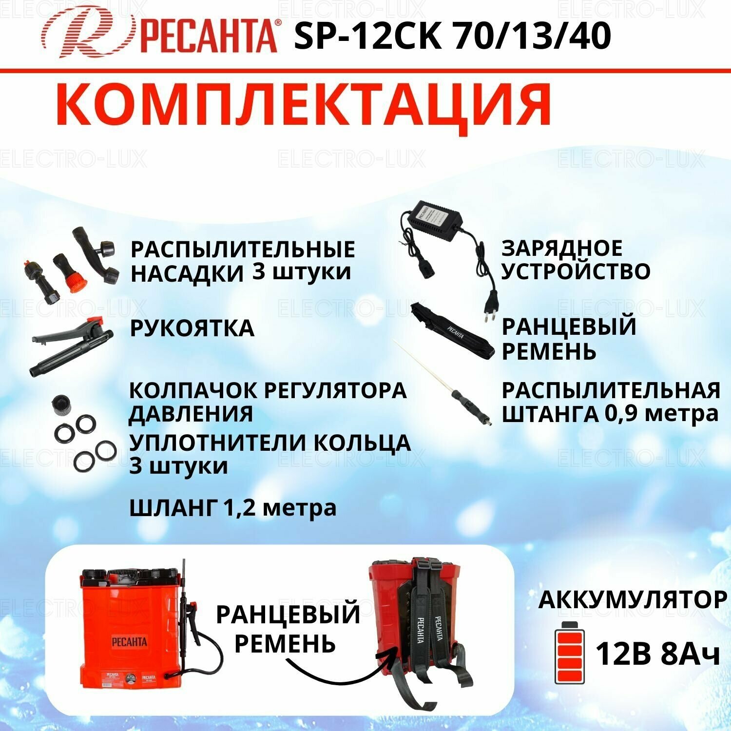 Опрыскиватель аккумуляторный Ресанта SP SP-12СК 70/13/40 black-red интересное: