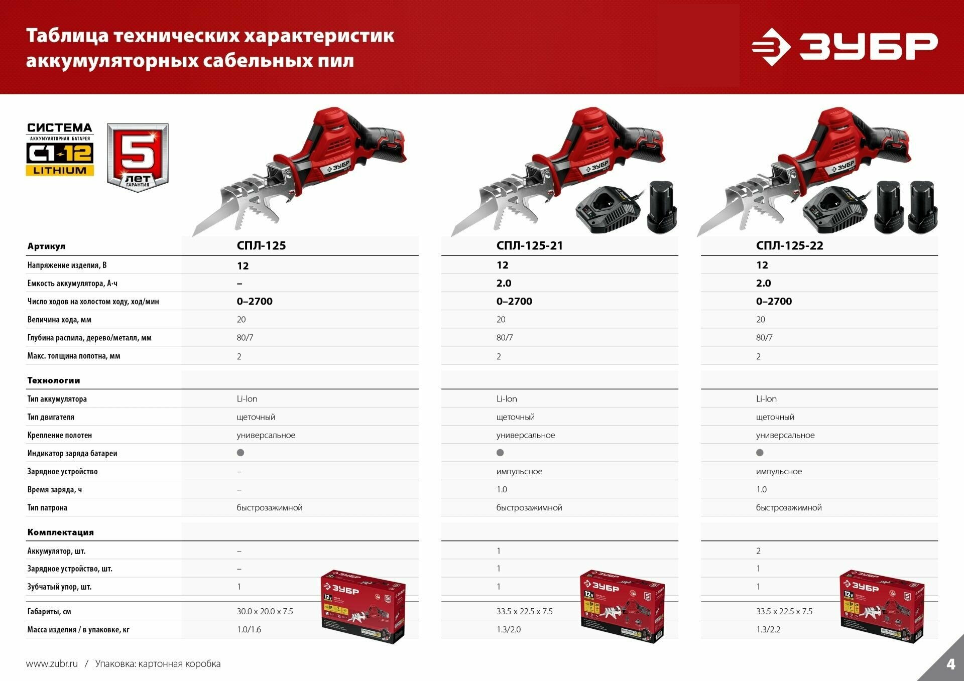 СохранитьСабельная пила Зубр СПЛ-125 (12В, без АКБ, в коробке) интересное: