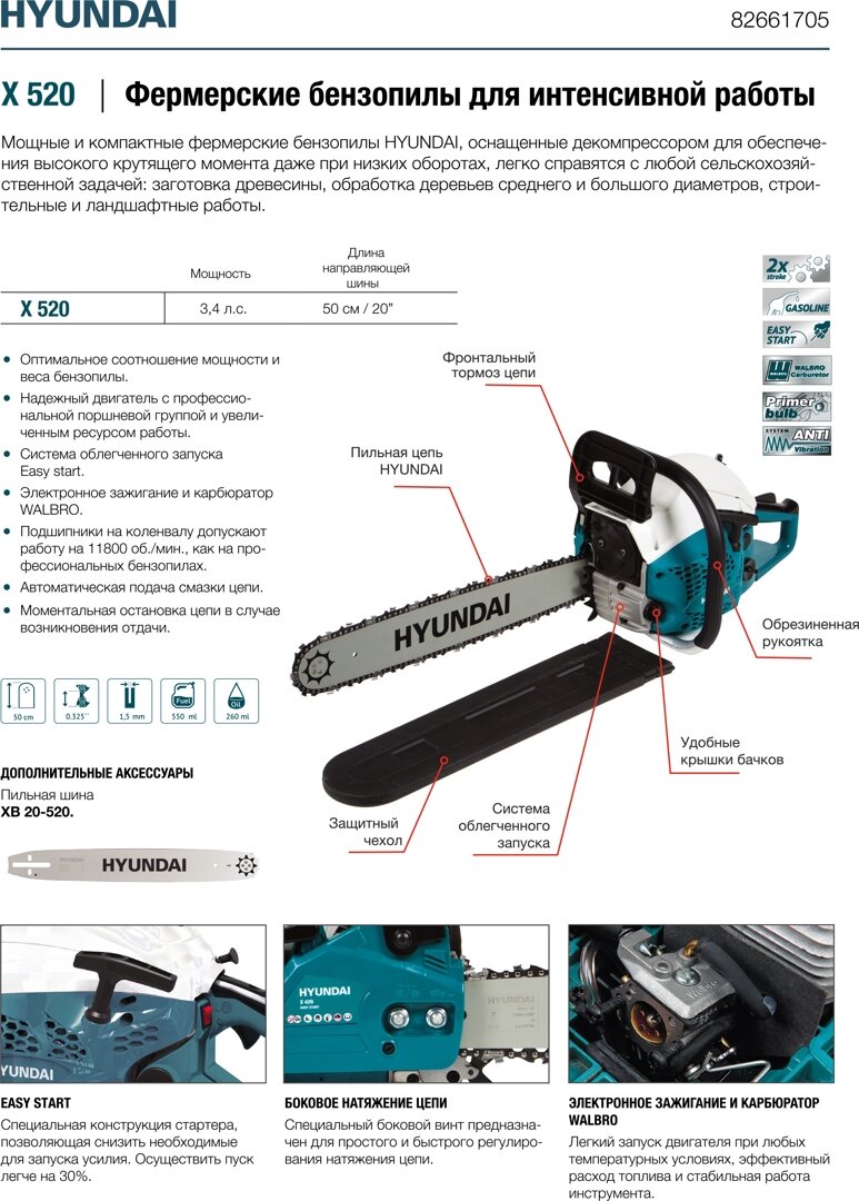 Бензопила Hyundai X 520 3.4 л.с шина 45 см интересное: