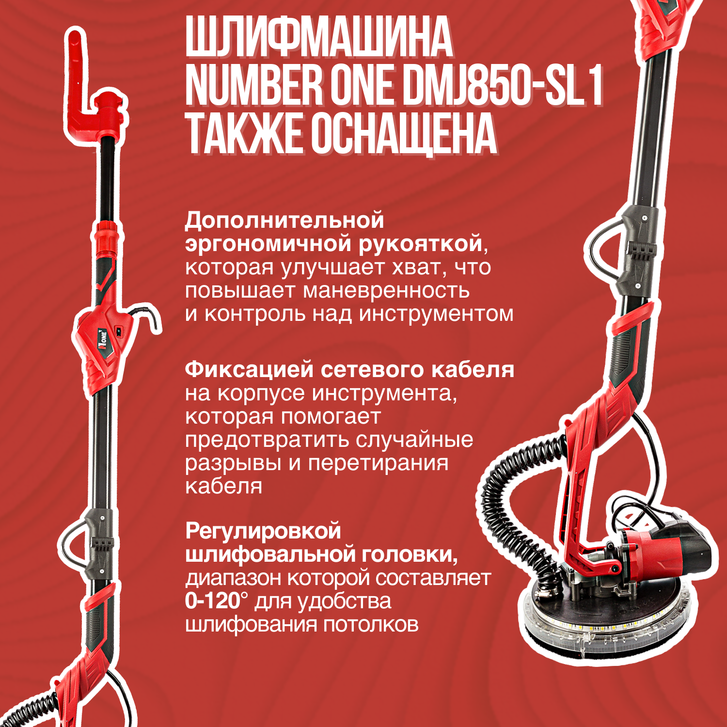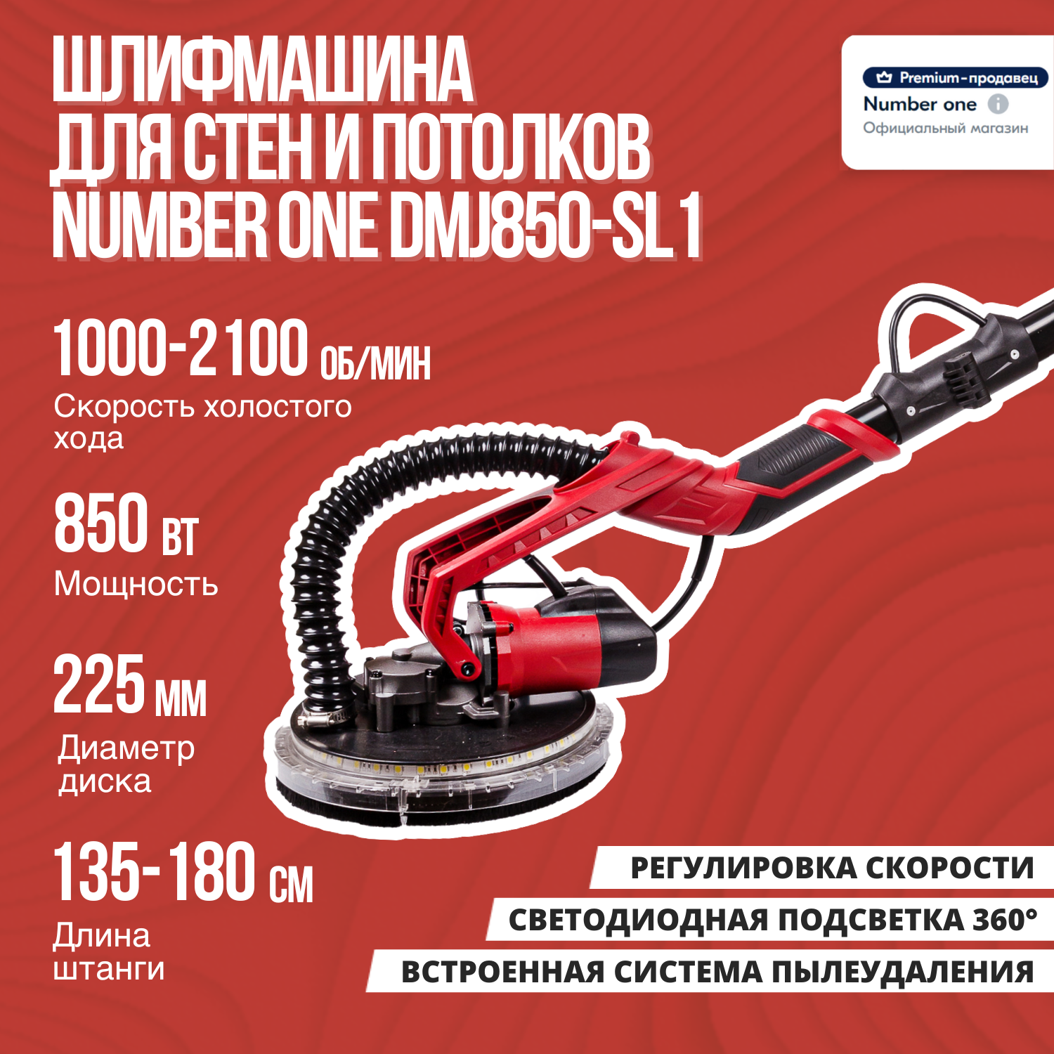 Шлифмашина для стен и потолков Number One DMJ850-SL1 (850 Вт, 225 мм) интересное: