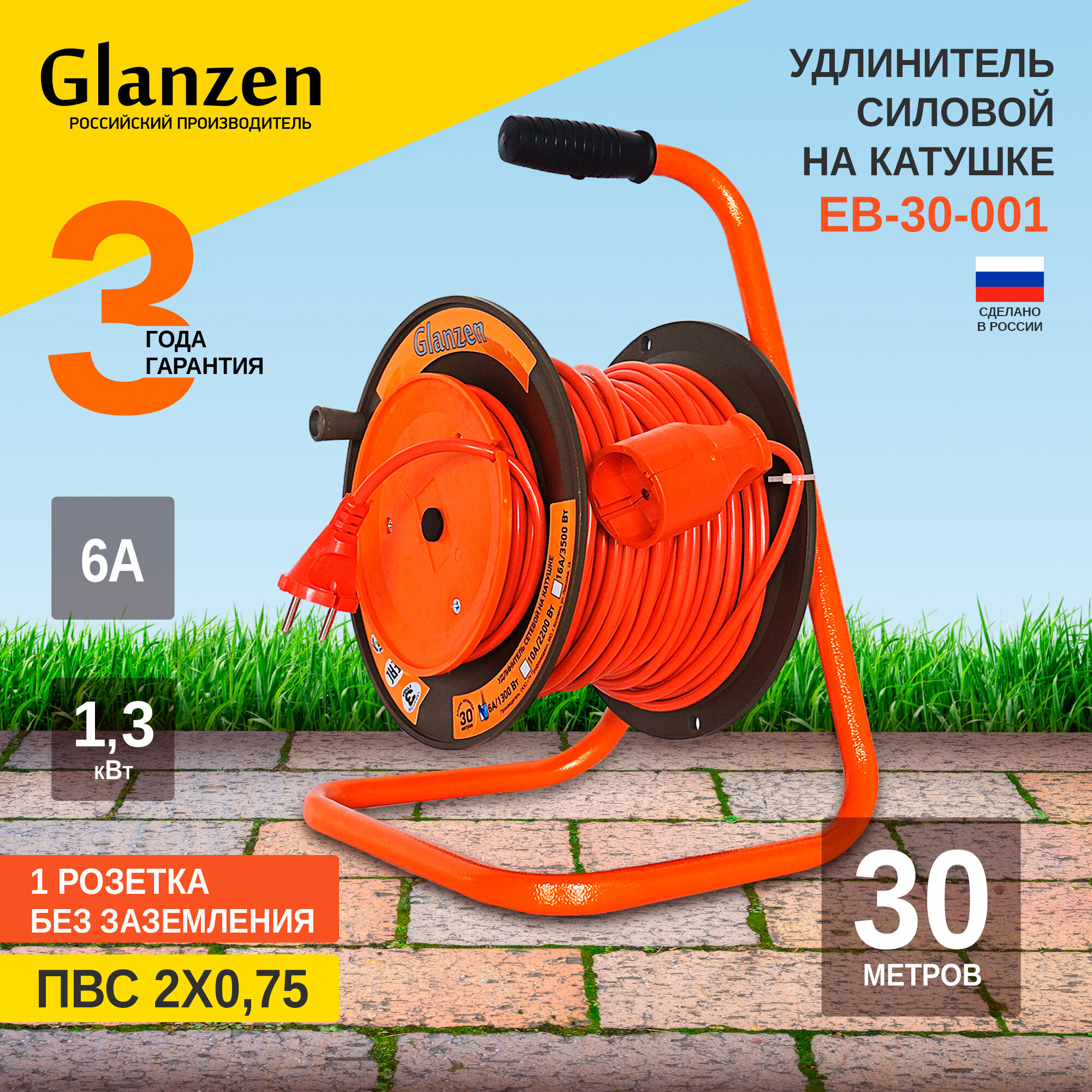 Удлинитель силовой на катушке с выносной розеткой GLANZEN ПВС 2х0,75, EB-30-001, 00-00000214 интересное: