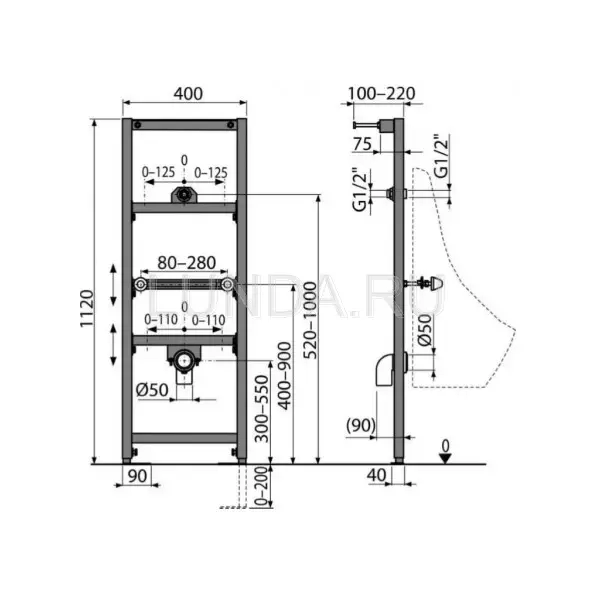 Рама для писсуара (высота монтажа 1,2 м), арт. A107/1120