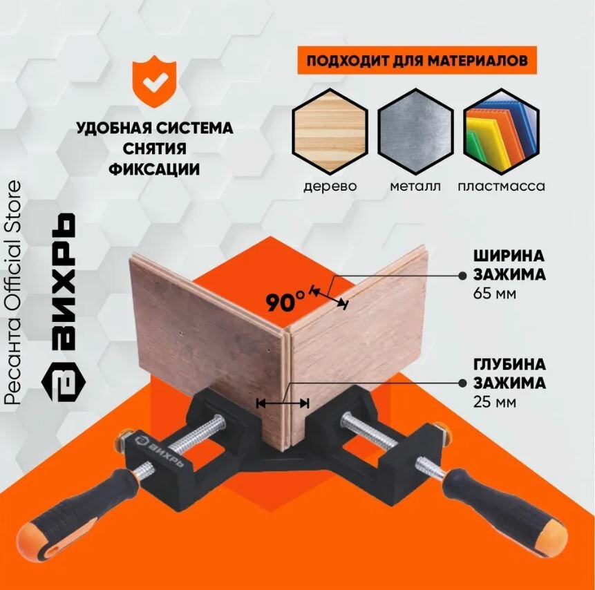 Струбцина угловая, быстрозажимная, 65х65 мм Вихрь интересное: