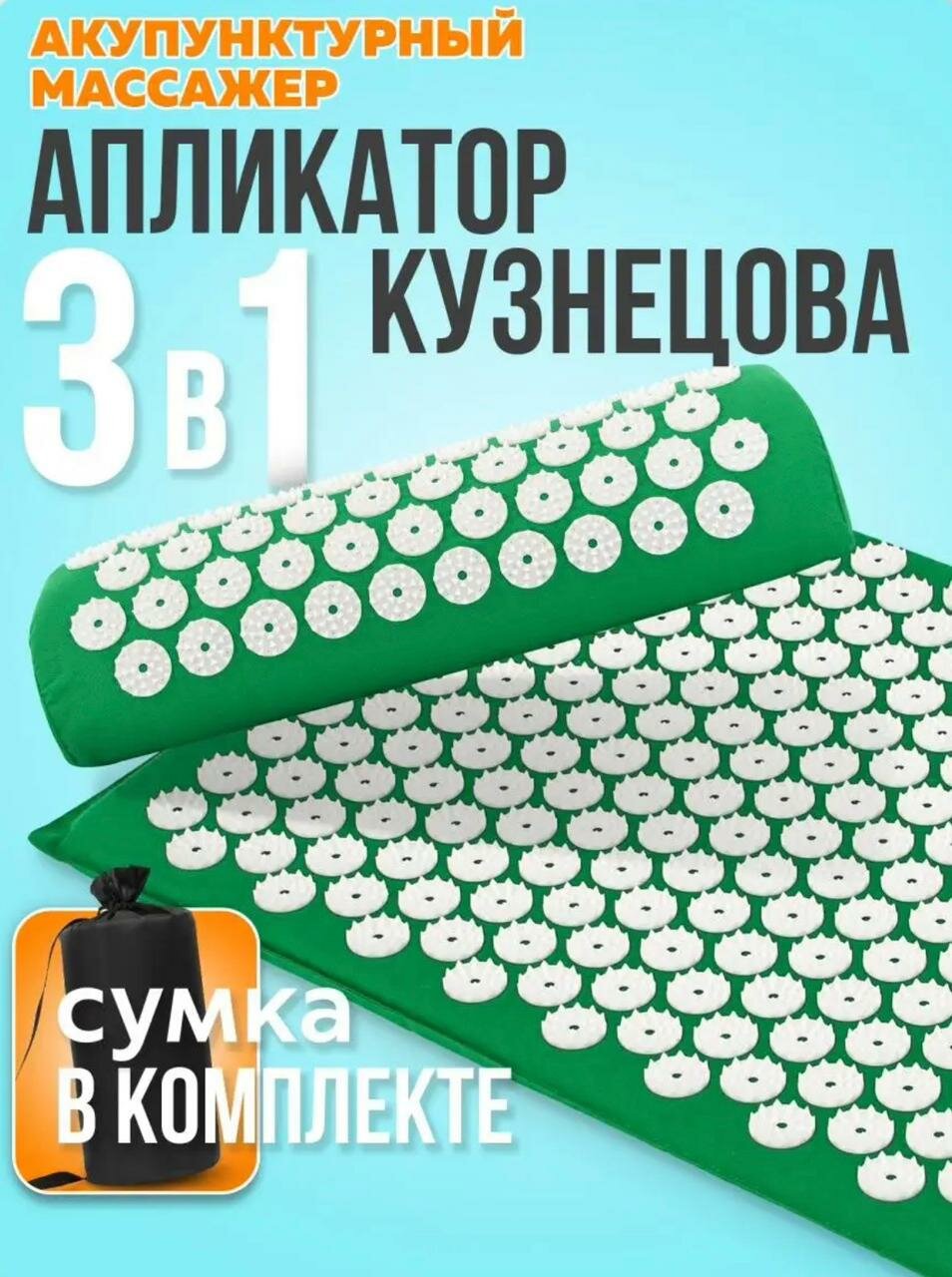Аппликатор Кузнецова / Акупунктурный набор / Валик и коврик акупунктурный/Зеленый