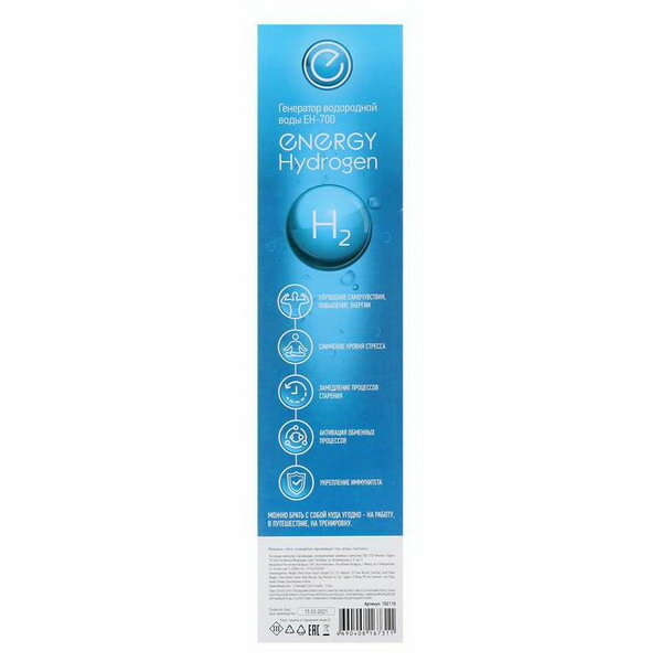 Ниже Вы можете прочитать отзывы на Генератор водородной воды Hydrogen EH-700, 700 мл, 70х250 мм, стекло, прозрачный, ознакомится с подробными характеристиками, посмотреть интересные обзоры и фотографии на Генератор водородной воды Hydrogen EH-700, 700 мл, 70х250 мм, стекло, прозрачный.