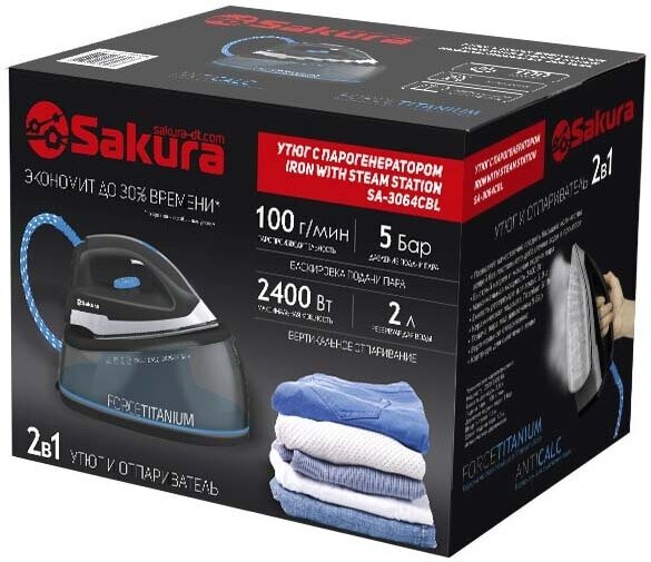SAKURA Парогенератор Sakura SA-3064CBL, 2400 Вт, керам. подошва, 2000 мл, 100г/мин, чёрно-синий