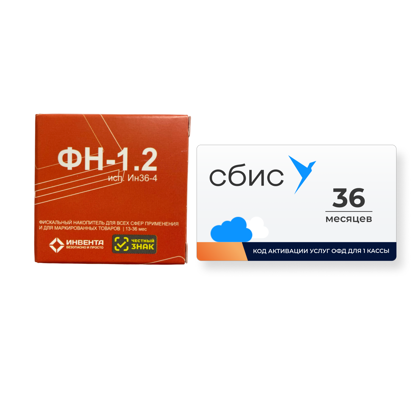 | Комплектация | Фискальный накопитель ФН-1.2 на 36 месяцев Инвента + Код ОФД Сбис (Тензор) на 36 месяцев |