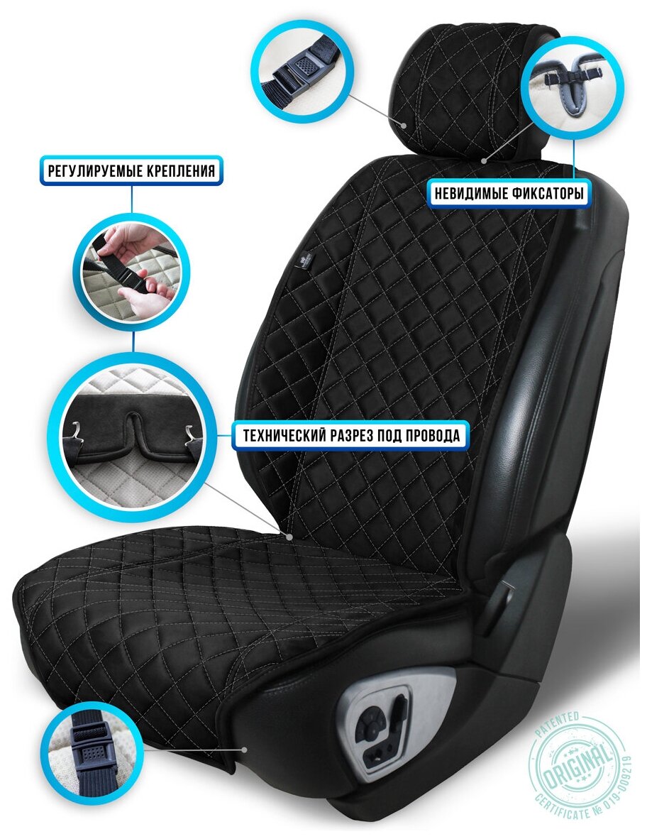 BARASHKOV/ Накидка чехол на сиденье автомобиля из алькантары на переднее сиденье авто.1шт. Модель L "CLASSIC". Черный, белый, черный