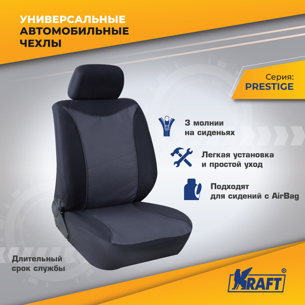 Купить Чехлы Универсальные На Автомобильные Сиденья,Комплект "Prestige",Полиэстер/Жаккард, Черно-Серые Kraft арт. KT835619