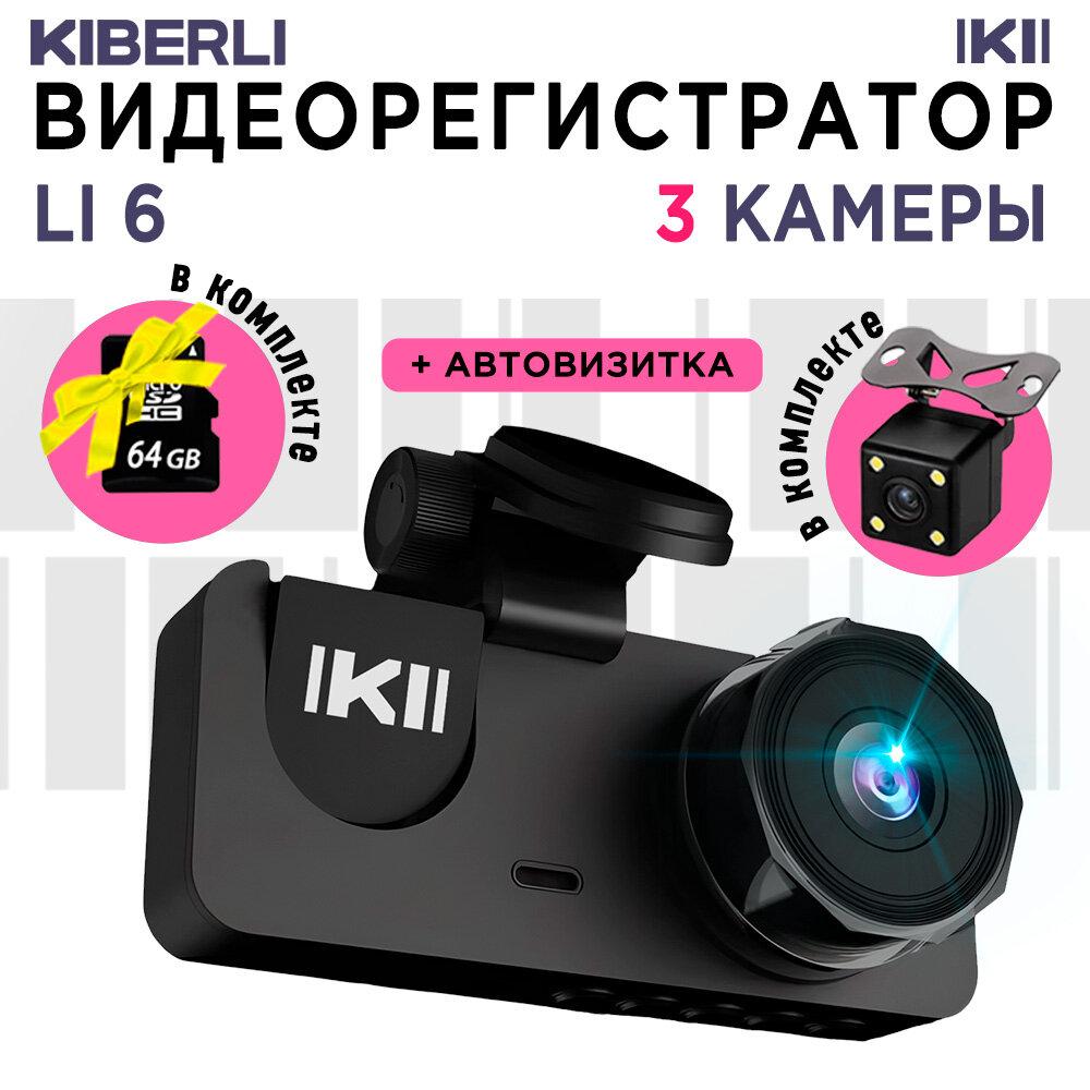 Видеорегистратор для автомобиля KIBERLI LI 6 камера заднего вида 3 камеры черный с датчиком движения G-сенсор TF-карты на 32 Гб автовизитка