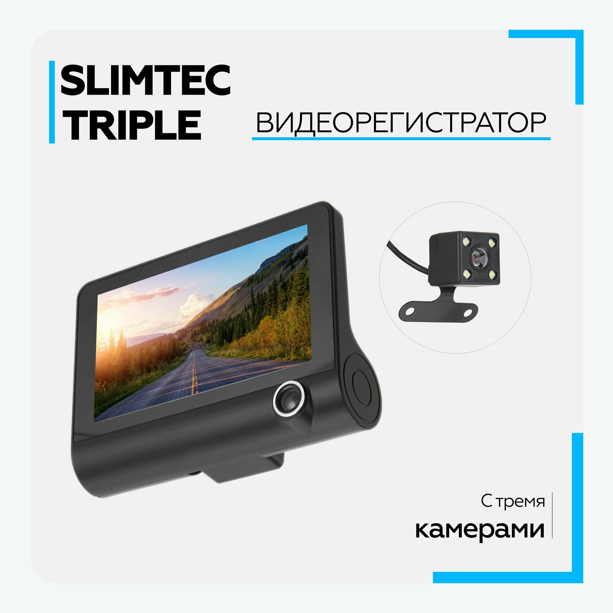 Видеорегистратор для автомобиля с камерой задней SLIMTEC Triple