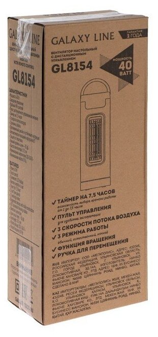 Купить Вентилятор Galaxy LINE GL 8154, настольный, 40 Вт, 3 скорости, от сети, пульт, бело-черный