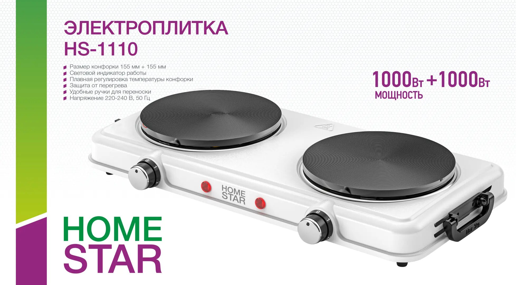 Электроплитка HOMESTAR HS-1104, чугун, серия сапфир
