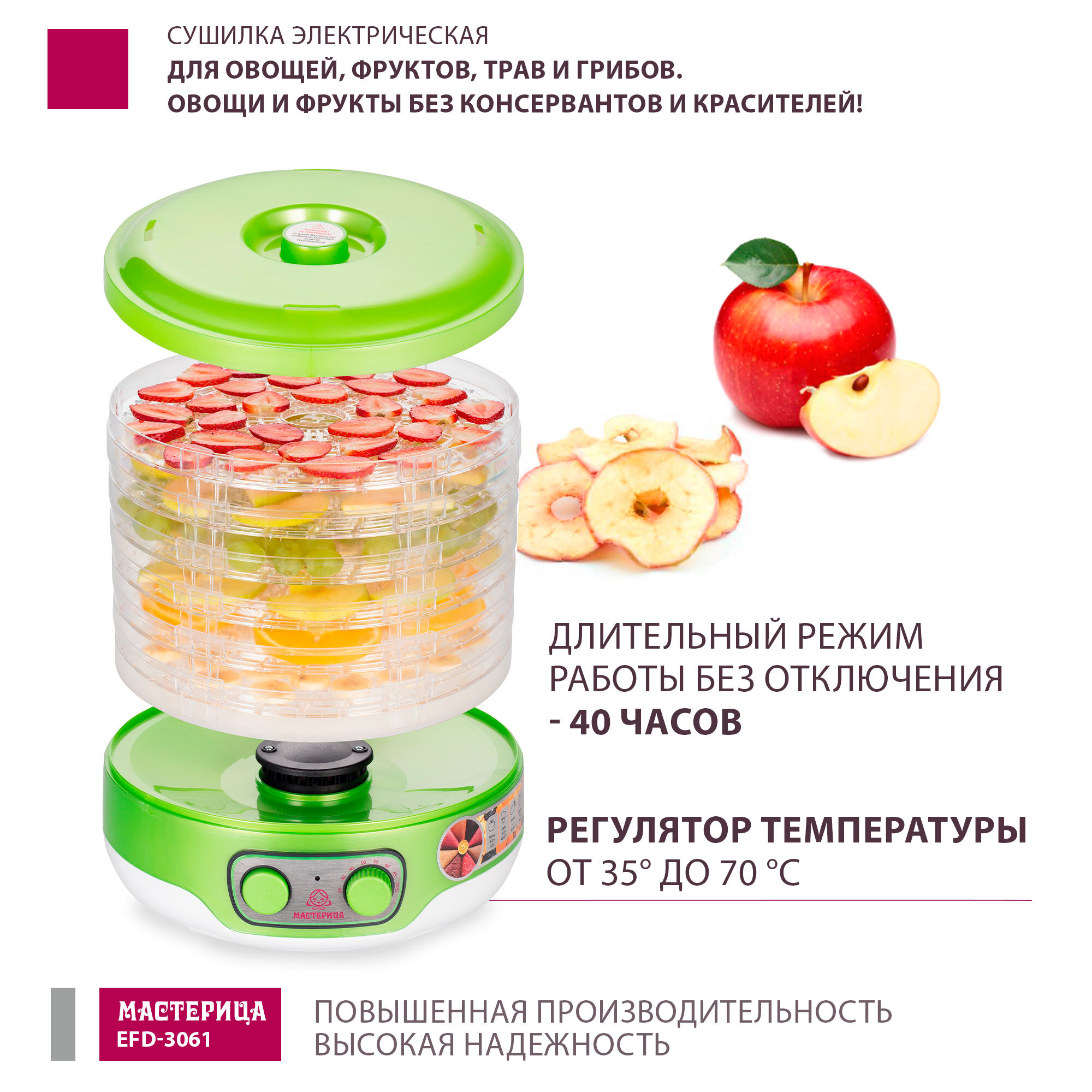 Купить Сушилка для овощей и фруктов "Мастерица" EFD-3061, 250 Вт, 6 ярусов, зелёная