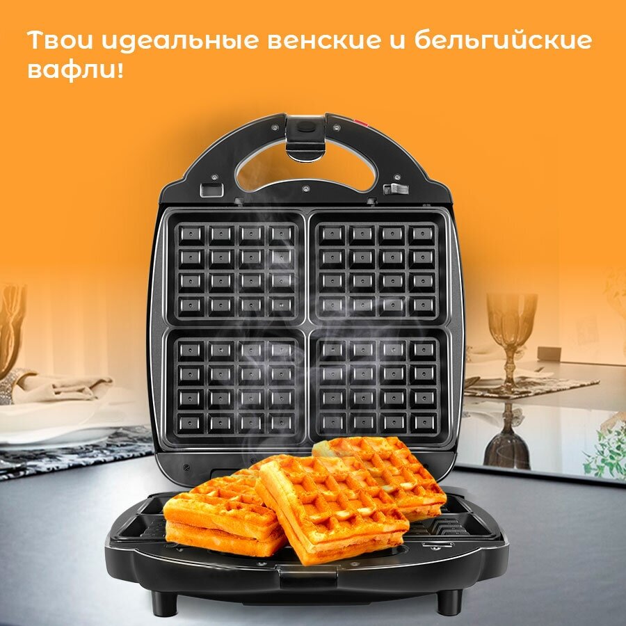 Сендвичница электрическая HAEGER HG-236 мультипекарь 3 в 1 вафельница гриль для тостов