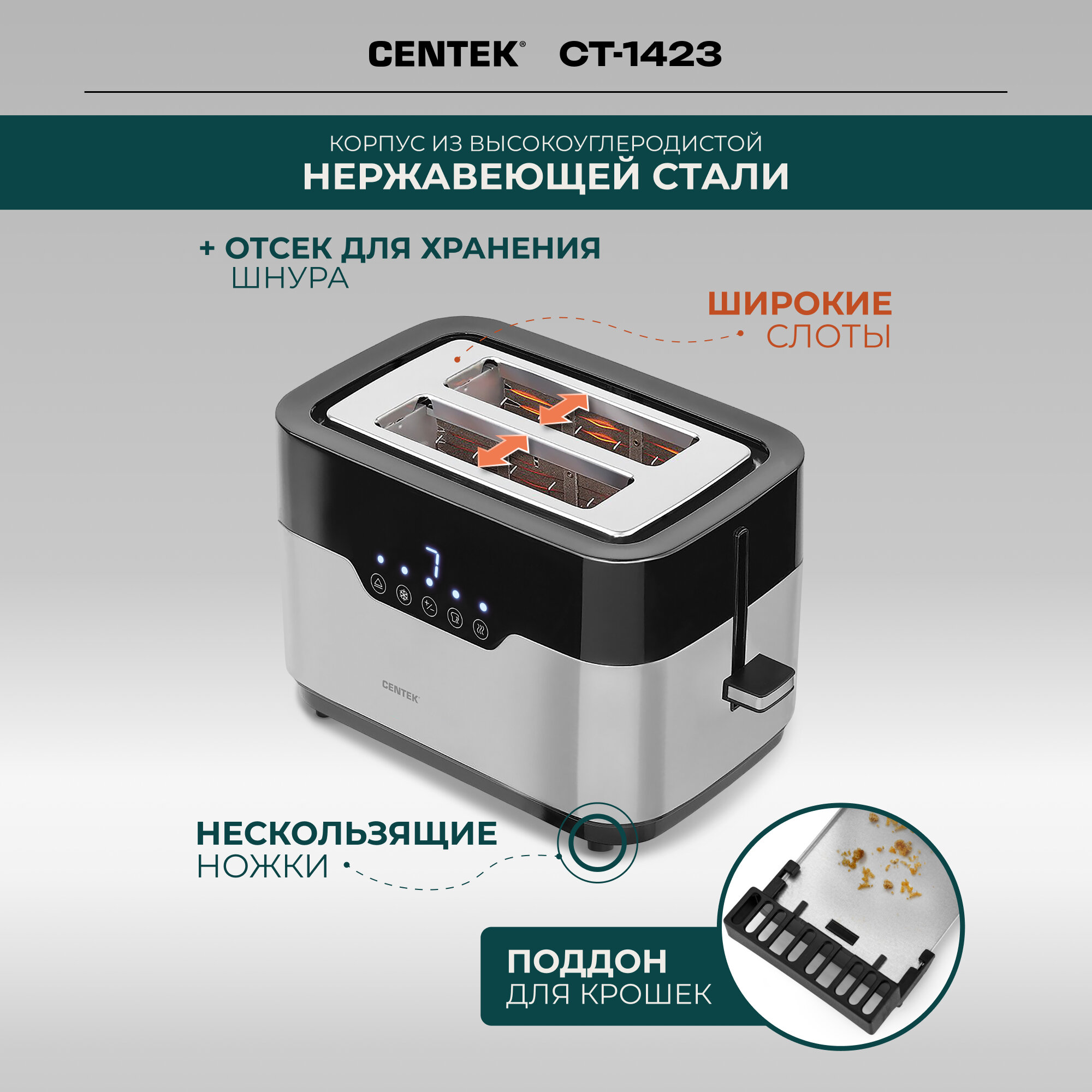 Тостер Centek CT-1423 сталь интересное:
