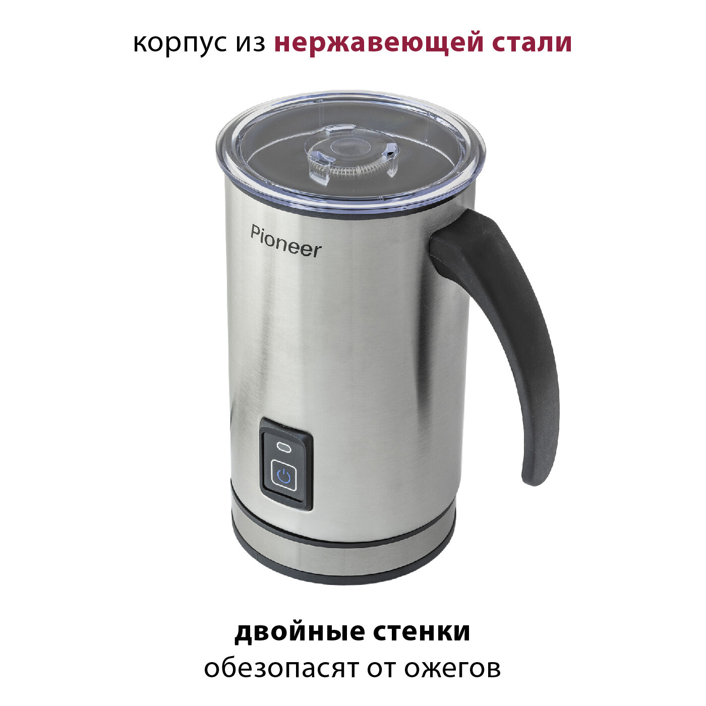 Капучинатор Pioneer MF101 с объемом чаши 400 мл и корпусом из нержавеющей стали с двойными стенками, 3 режима работы, функция автоотключения, 500 Вт