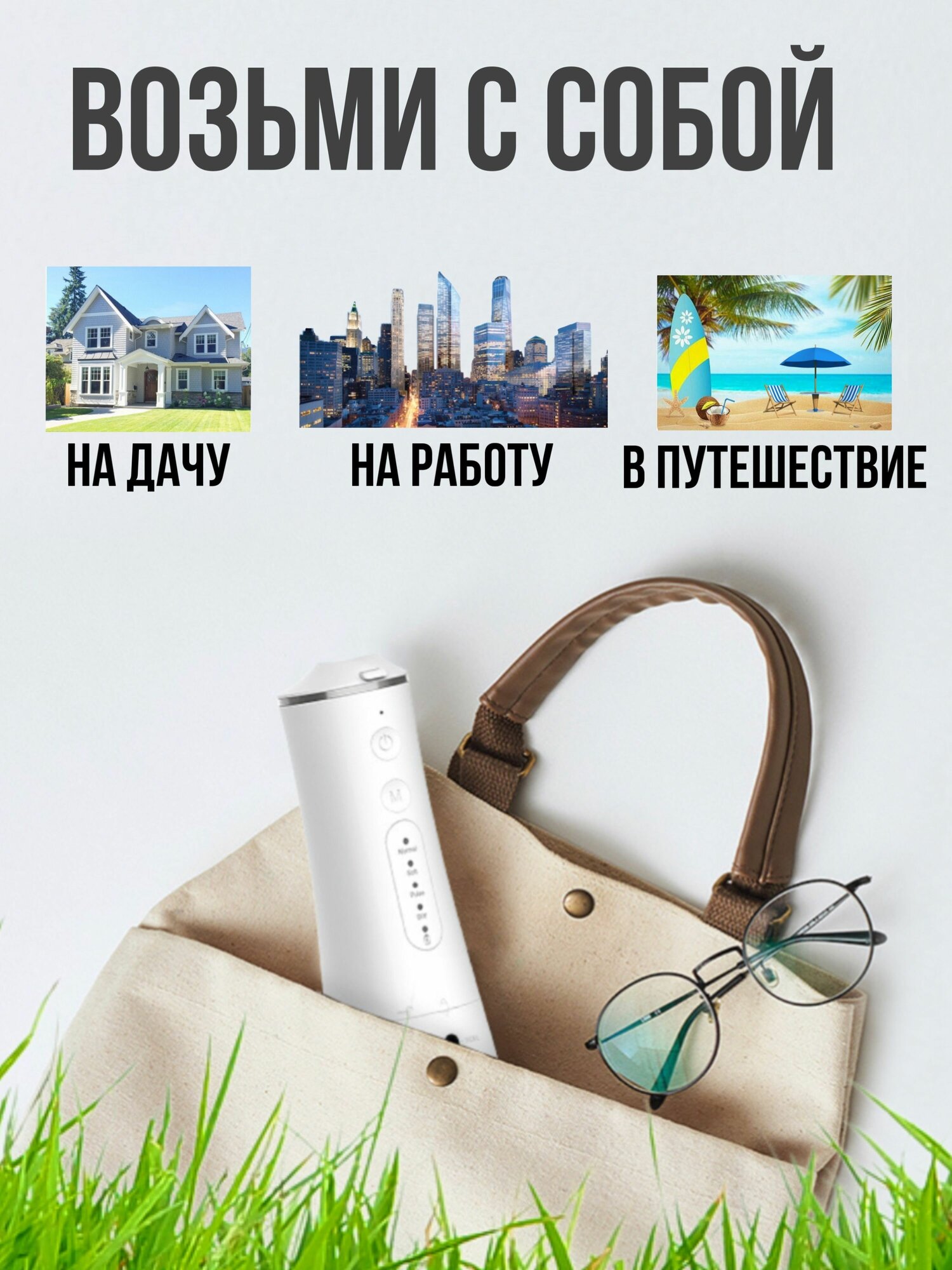 Беспроводной портативный ирригатор для полости рта белый, 300 мл