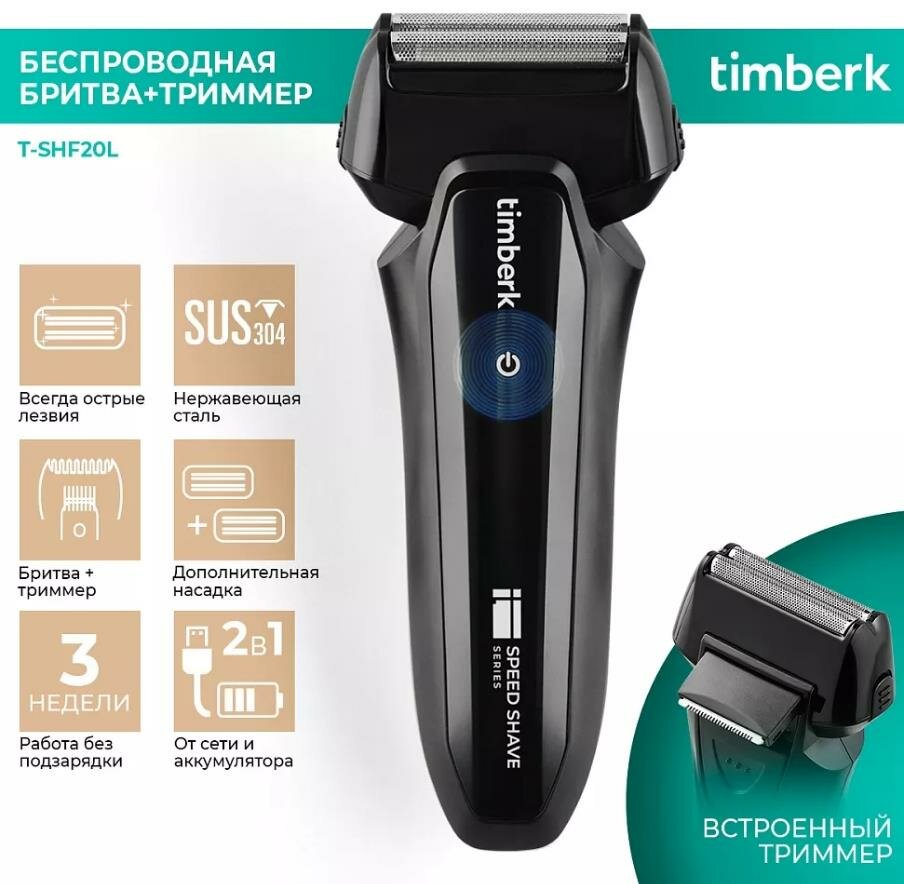 Бритва TIMBERK T-SHF20L сеточная, черный