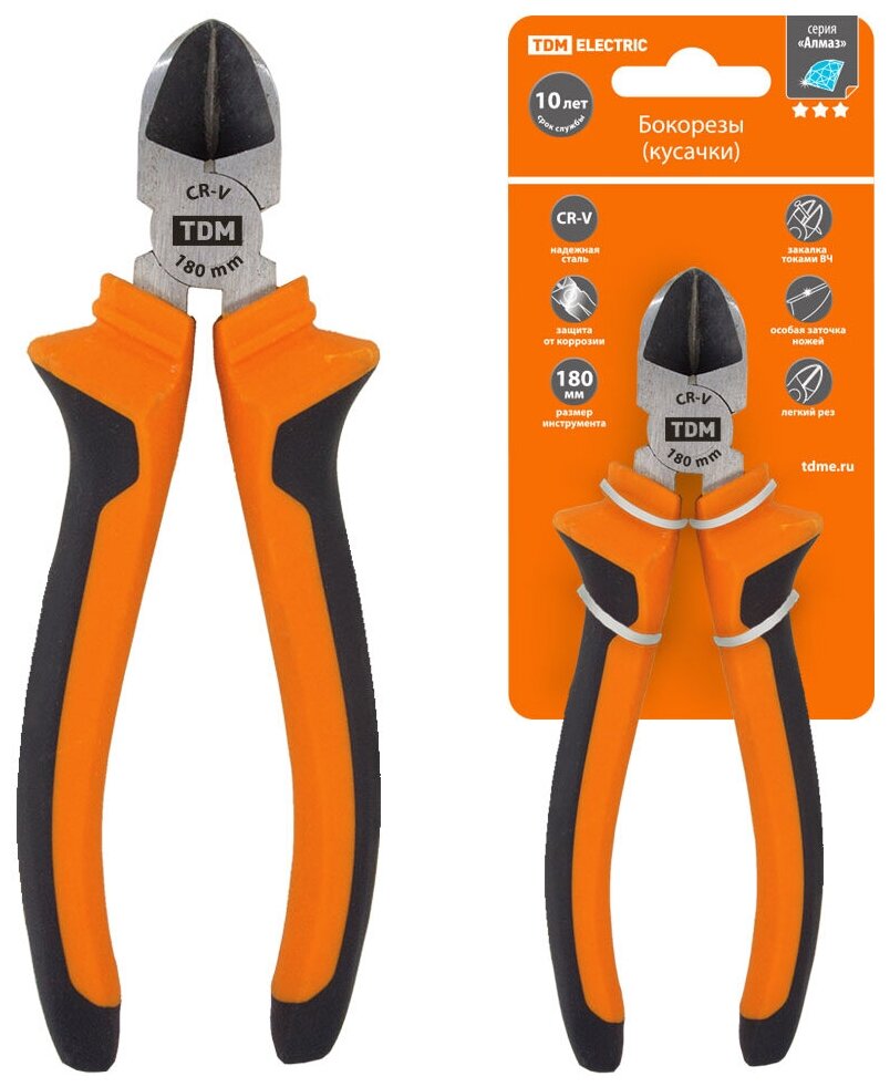 Купить Бокорезы (кусачки), с двухкомпонентными рукоятками, CR-V сталь, 180 мм, серия "Алмаз", TDM SQ1012-0203 (6 шт.)