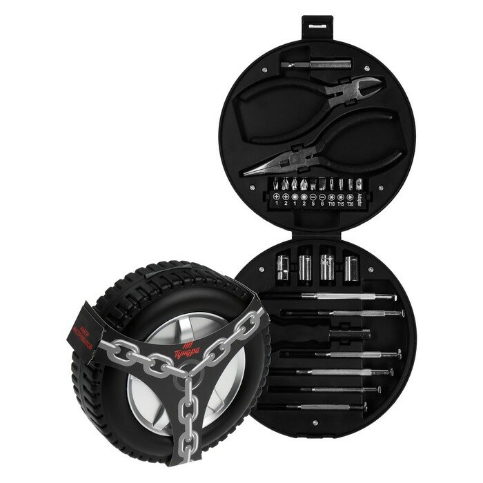 Тундра Набор инструментов тундра, подарочный пластиковый кейс "Колесо", 24 предмета интересное:
