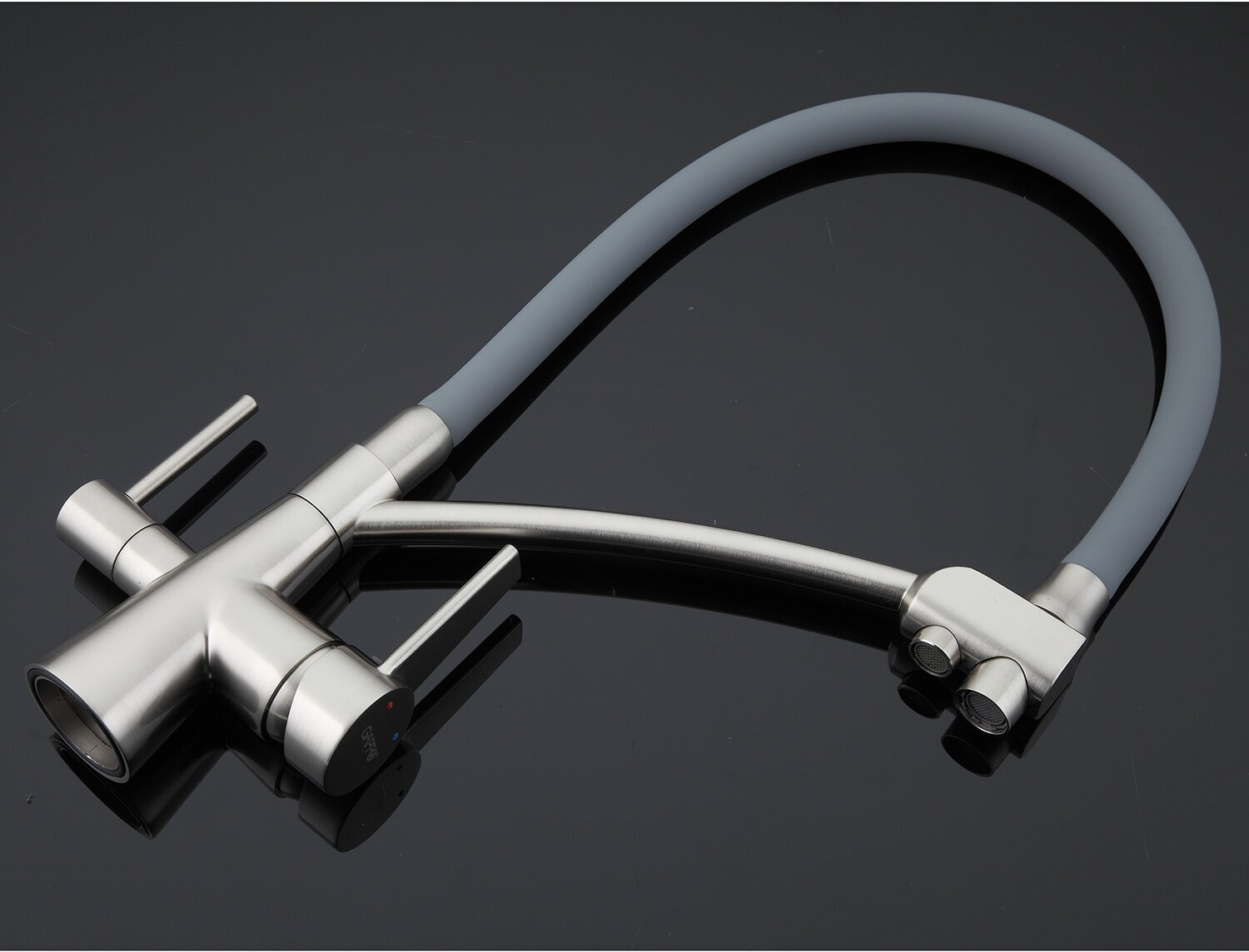 Смеситель для кухни Gappo G4398 с подключением фильтра, сатин серый (6959477695391)