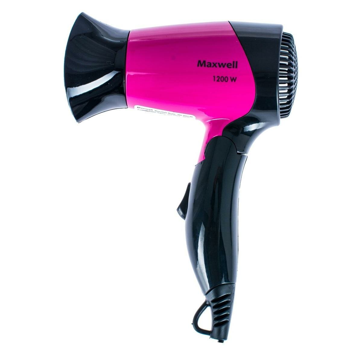 Фен Maxwell MW-2007 BK, 1200 Вт, 2 температурных режима, 2 скорости, чёрно-розовый