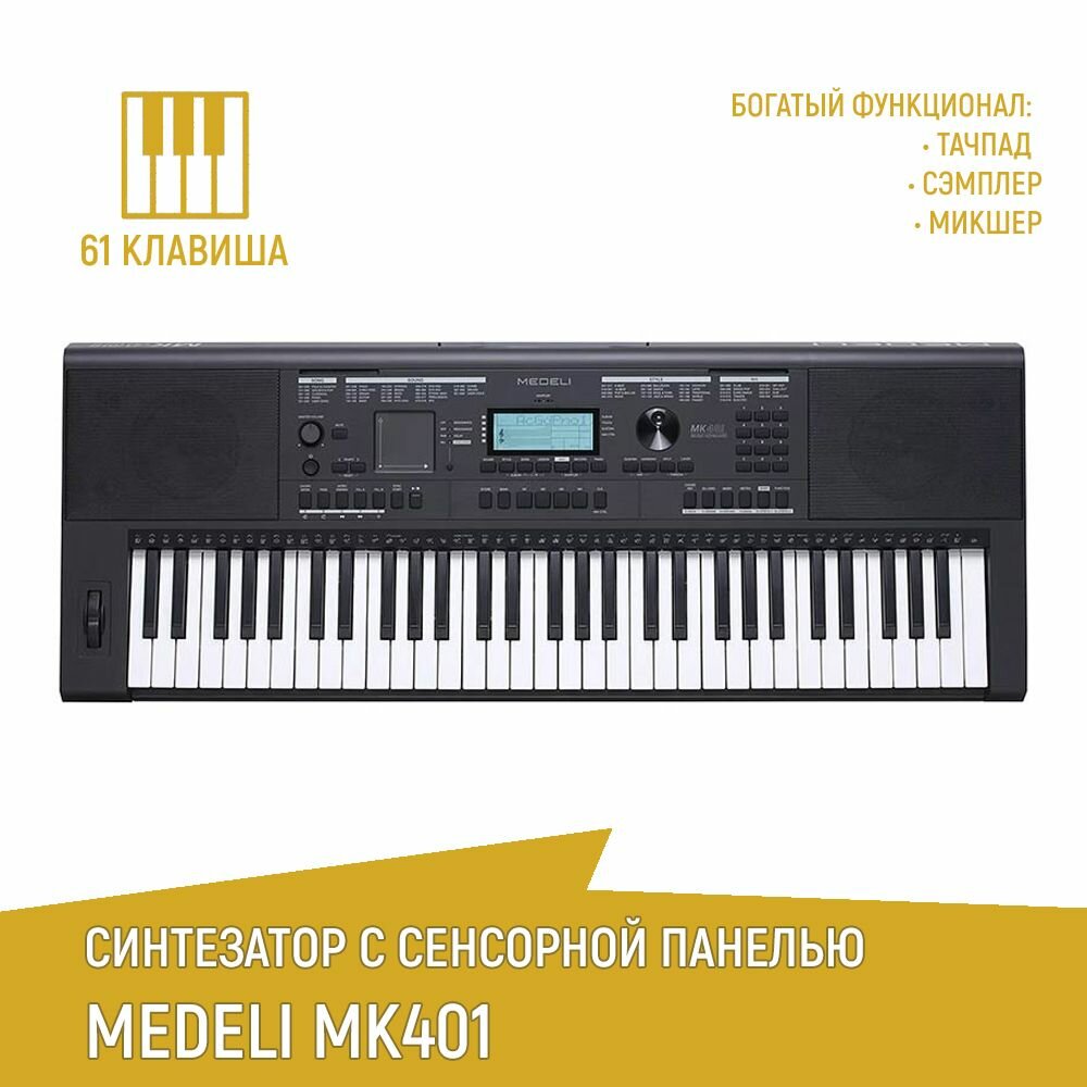 Купить Medeli MK401 Cинтезатор, 61 клавиша, 600+5 голосов, 200 стилей, полифония 64, цвет - черный MK401