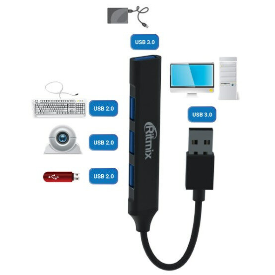 Разветвитель для компьютера Ritmix CR-4400 Metal интересное: