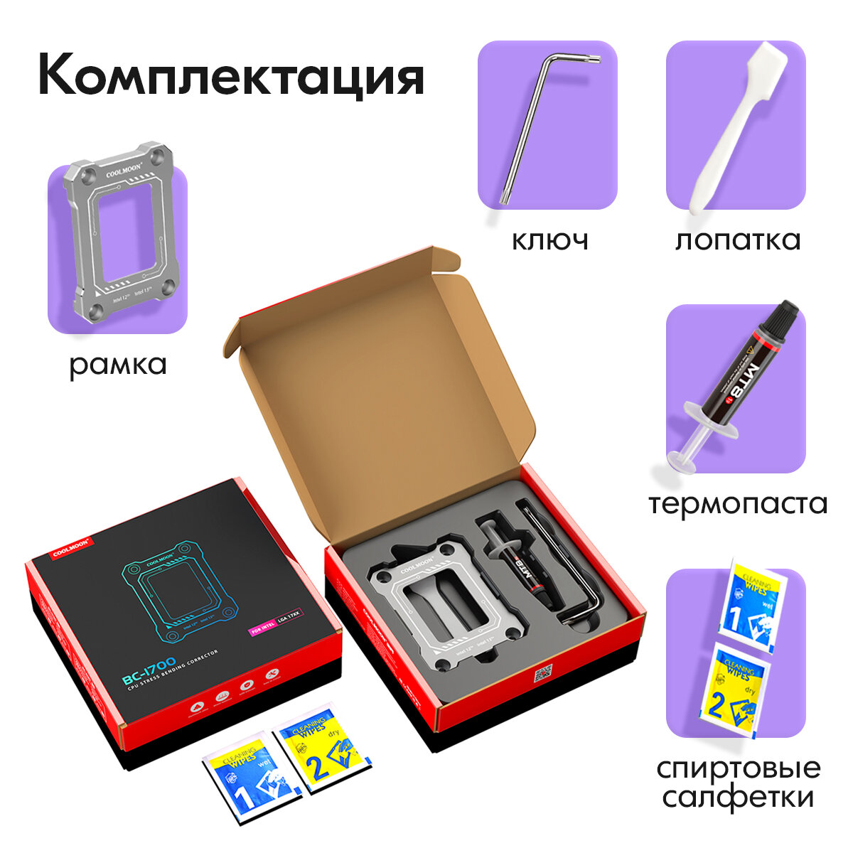 Купить Рамка коррекции для процессора Intel LGA 1700 COOLMOON термопаста и ключ в комплекте, серебристый цвет