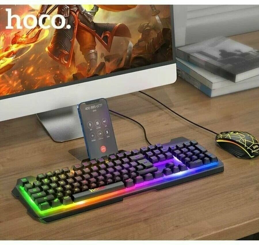 Комплект игровой HOCO DL16 проводной клавиатура+мышь с подсветкой RGB (черный) русская раскладка интересное: