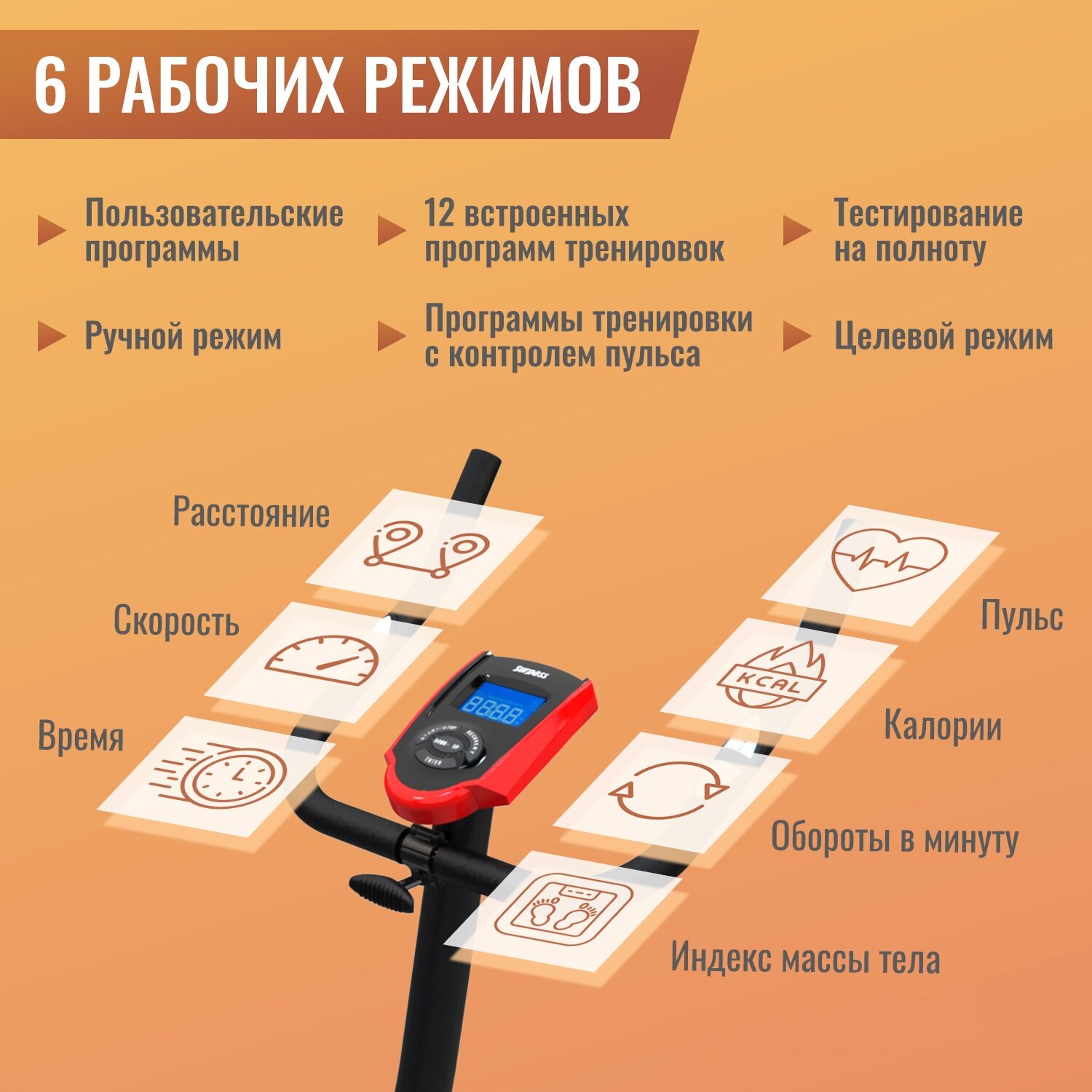 | Особенности | автономная работа; ремешки на педалях; тип кардиодатчика: встроенный; крепление кардиодатчика: на руле |