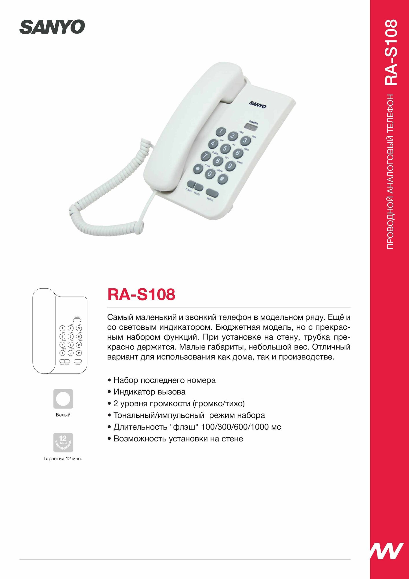 Телефон проводной Sanyo Ra-s108w Ra-s108w .