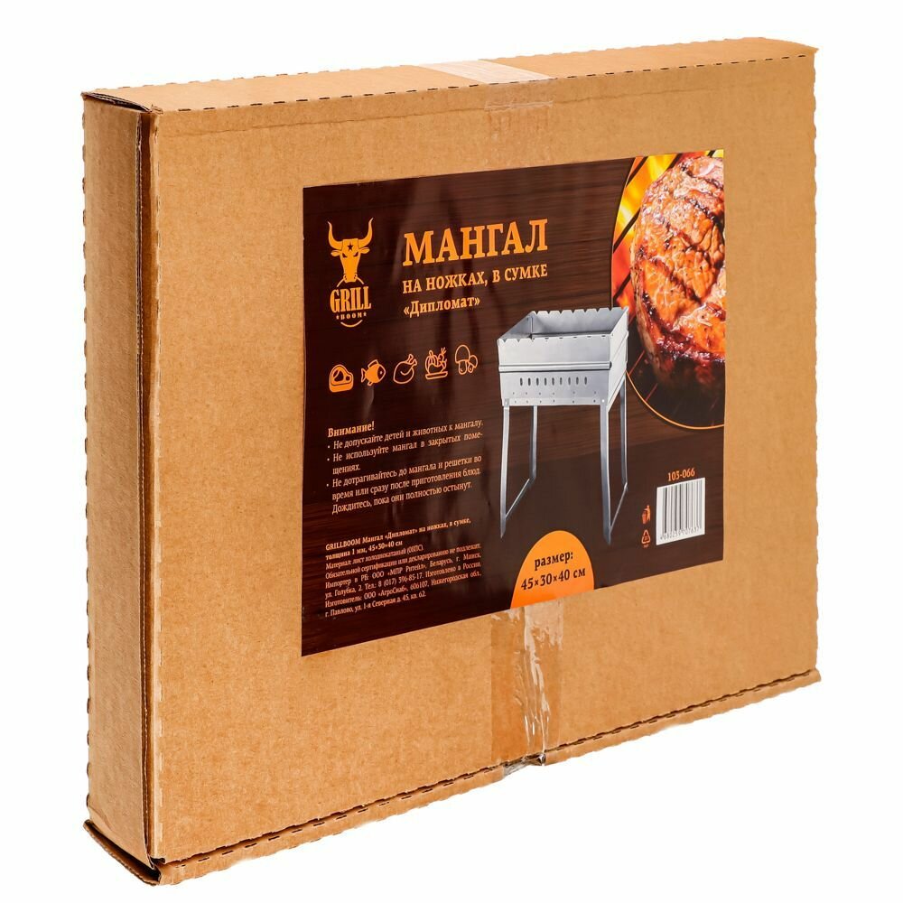 Купить Мангал "Дипломат" Grillboom в сумке на ножках, толщ 1мм, 45x30x40см .