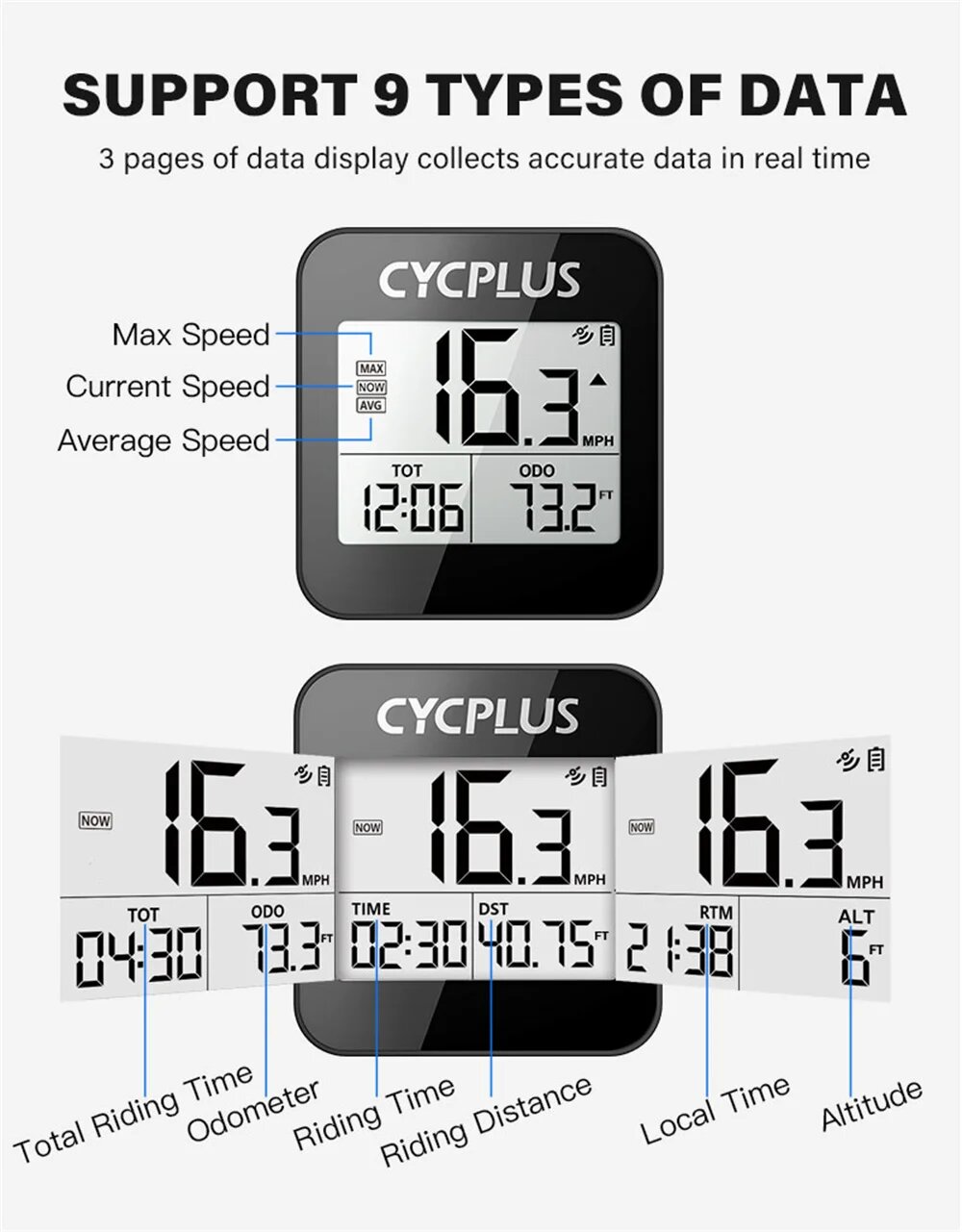 Cycplus G1 GPS 9 функций / Велокомпьютер беспроводной