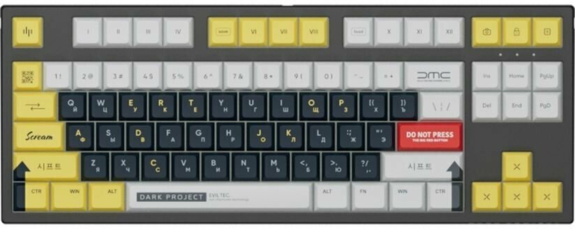 Игровая клавиатура Dark Project KD87A LTD Gateron Cap Teal, черный/белый/желтый, английская/русская (ANSI) интересное: