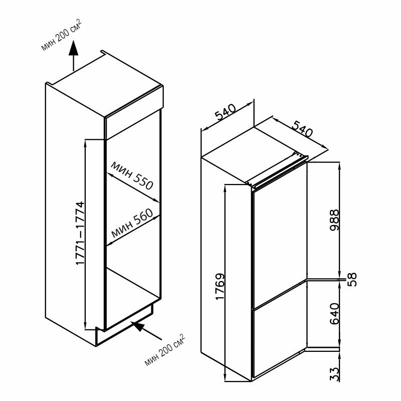 | Отзыв: | Без проблем встроили. Отличный, большой, благодаря инвенторному мотору работает практически неслышно. Разморозки не требует. Места хватает для закупки продуктов на две-три недели. Довольны своим выбором. |