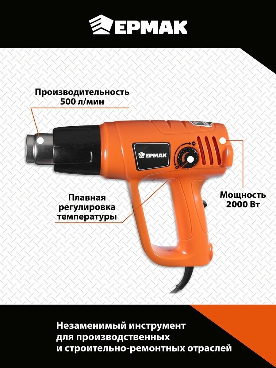 Фен технический ермак ФТ-2000-КР, 80 - 600 C° интересное: